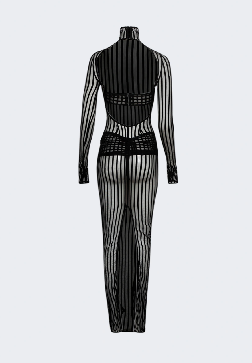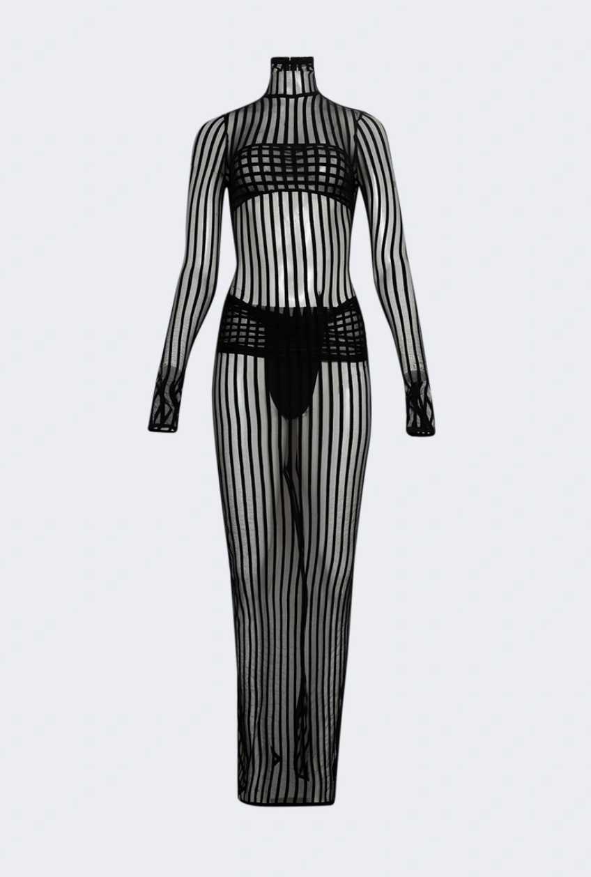 The Open Back Maxi Dress with Cross Grain Detail is a study in modern elegance and refined craftsmanship. Designed to elongate the form and move effortlessly with every step, this statement piece combines a luxurious drape with subtle architectural accents.
